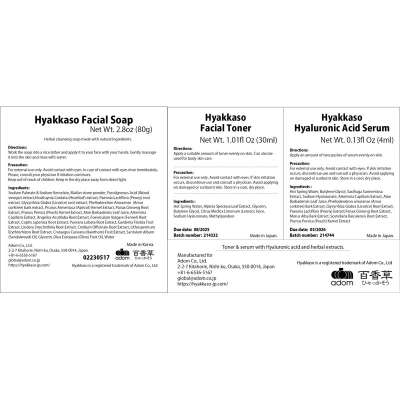 - 【SOAP】does not contain any harmful ingredients, preservatives, dyes or added fragrances. Hyakkaso Facial soap is safe for children use. Can be used not only for the face care, but for the body and back acne treatment as well. Hyakkaso Soap helps to preserve the hydration level of skin while getting rid of the impurities. Can be used as a make-up remover, face wash and foam face pack. Prestigious product gained trust in Japan! Over 1,410,000 products have been sold within Japan. ※Made in Korea.