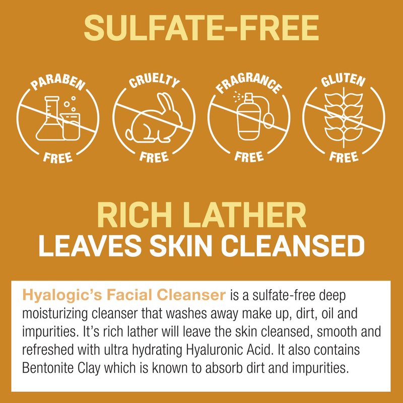 It is a deeply moisturizing, sulfate-free Facial Cleanser that helps wash away dirt, oil and impurities, leaving the skin feeling soft, smooth and refreshed. Combined with premium, ultra-hydrating Hyaluronic Acid, this lavish Facial Cleanser contains the powerful ingredient, Bentonite Clay, known for its ability to absorb toxins and impurities. Our paraben free Facial Cleanser produces a rich lather that moisturizes and nourishes the skin for a healthy appearance.