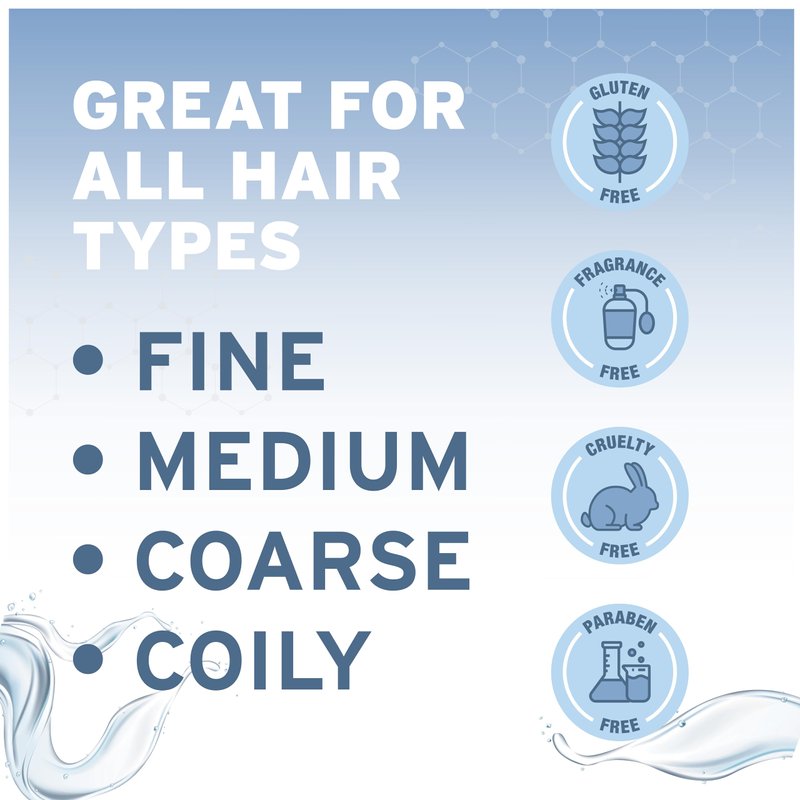 Our pH balanced formula contains Pro Vitamin B5, that improves the Hyaluronic Acid properties to strengthen hair and retain moisture.