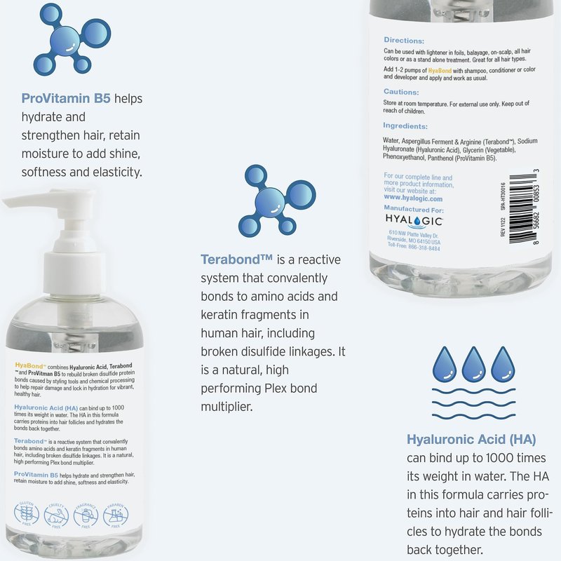 Hyalogic Hair Bonding Treatment Hyabond w/Hyaluronic Acid (HA), TeraBond & Pro-Vitamin B5 – 8oz - Spa Quality Repair of Split Ends, Color, Bleaching, Heat and Chemical Damaged Hair