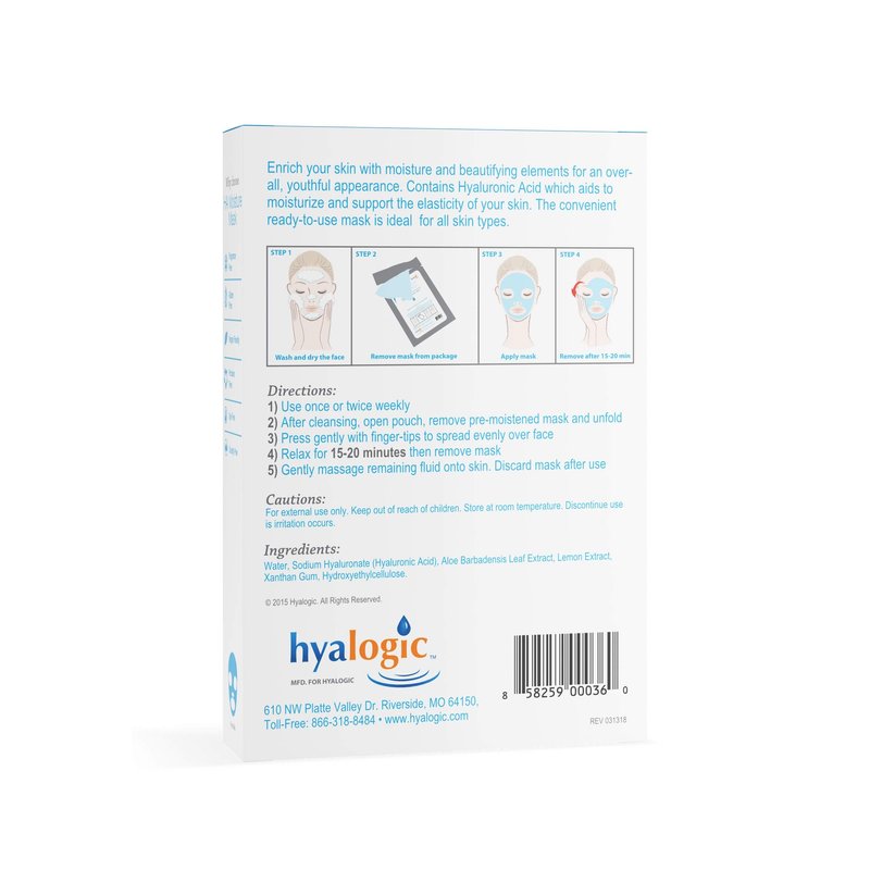 Hyalogic Hyaluronic Acid & Aloe Moisturizing Face Mask – Hydrating & Radiance Boosting Sheet Mask for Women – Vegan, Gluten-Free, Cruelty-Free Facial Treatment – Pack of 4 Pre-Moistened Face Masks