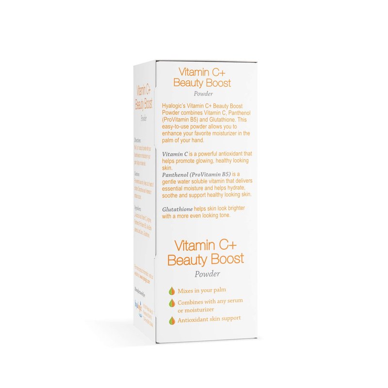 - Experience Youthful Radiance: Combat premature aging by mixing this vitamin C for face with your favorite serum or moisturizer. Our Vitamin C Beauty Boost harnesses powerful antioxidants for a revitalized, healthier skin glow. Renew your appearance with Hyalogic’s vitamin C skin powder and enjoy a youthful appearance.