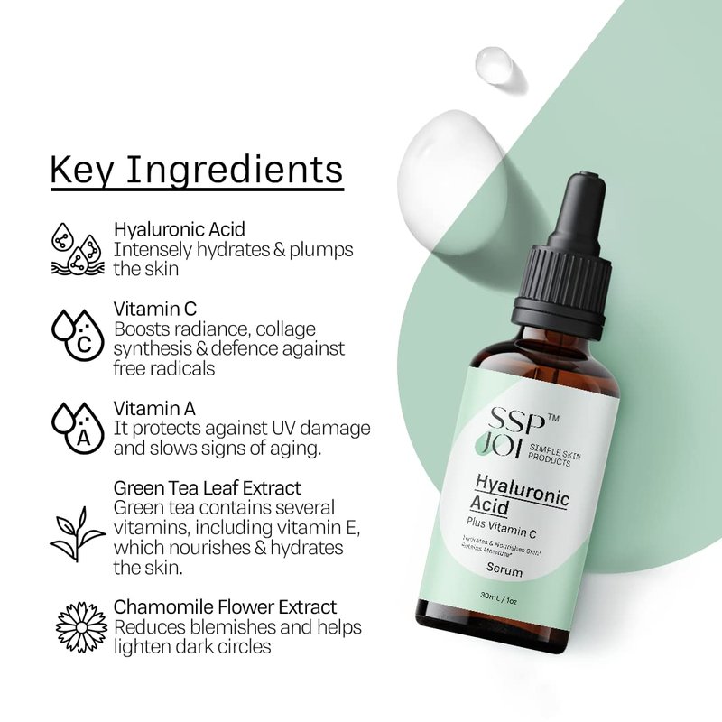 - š¦šØšš§šššš šš¢š„ š¦šš”š¦šš§šš©š š¦ššš”: SSPJOI Hyaluronic Plus Vitamin C serum for face has no harsh chemicals, additives & parabens. Cruelty free & vegan friendly. Safe for all skin types as it rejuvenates cells for a youthful glow.