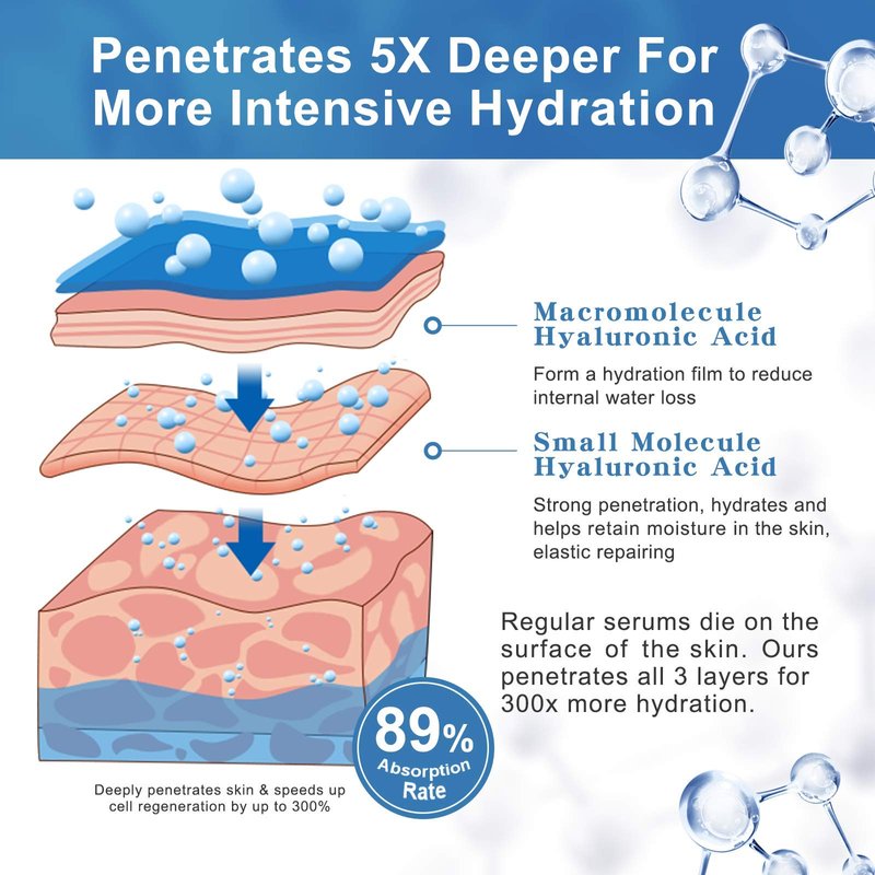 Hyaluronic Acid Serum for Face Neck Body Hyaluronic Acid Moisturizer with Vitamin C Vitamin E for Wrinkle, Dry Skin,Fine Lines Skincare