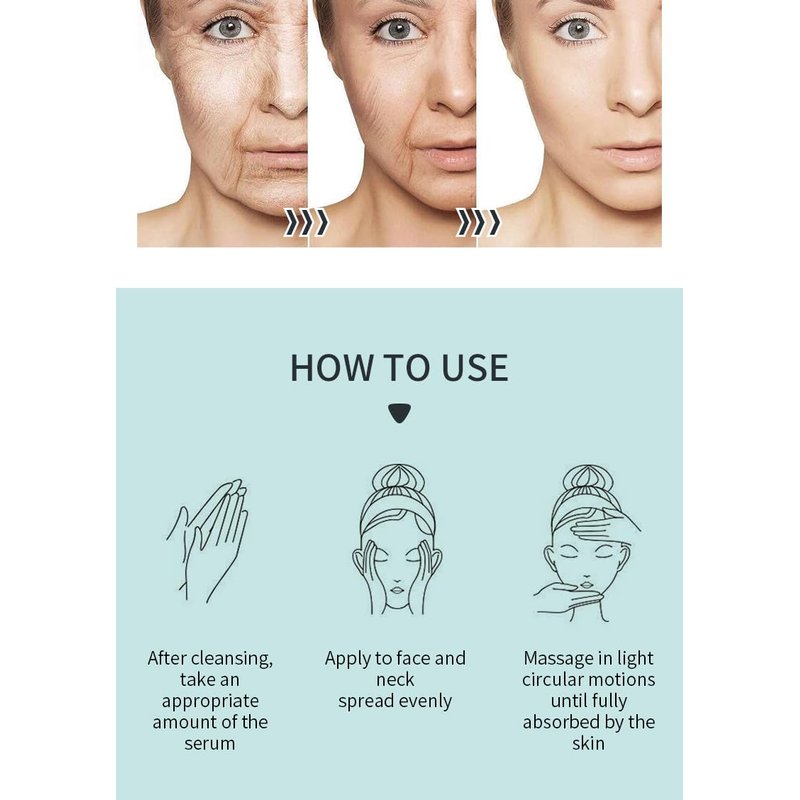 - 【Directions】Apply 3-5 drops of facial serum to cleansed skin; first-time users of hyaluronic serum for the face should begin by applying only 2-3 times per week; avoid eye contact and always patch test facial skin care products 24 hours before use; use externally only. Apply daily