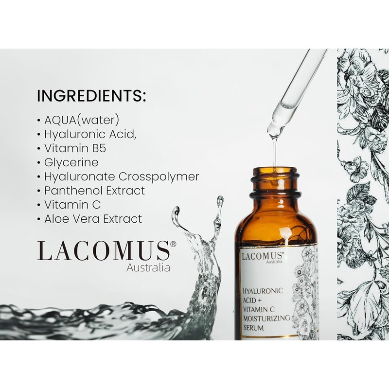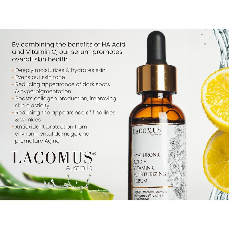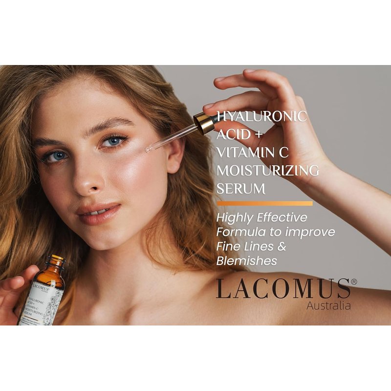 Hyaluronic Acid + Vitamin C Moisturizing Serum for Fine Lines and Blemishes - Organic and Cruelty-Free Skin Health Booster - Moisturizing Formula for Youthful Skin - LACOMUS Australia