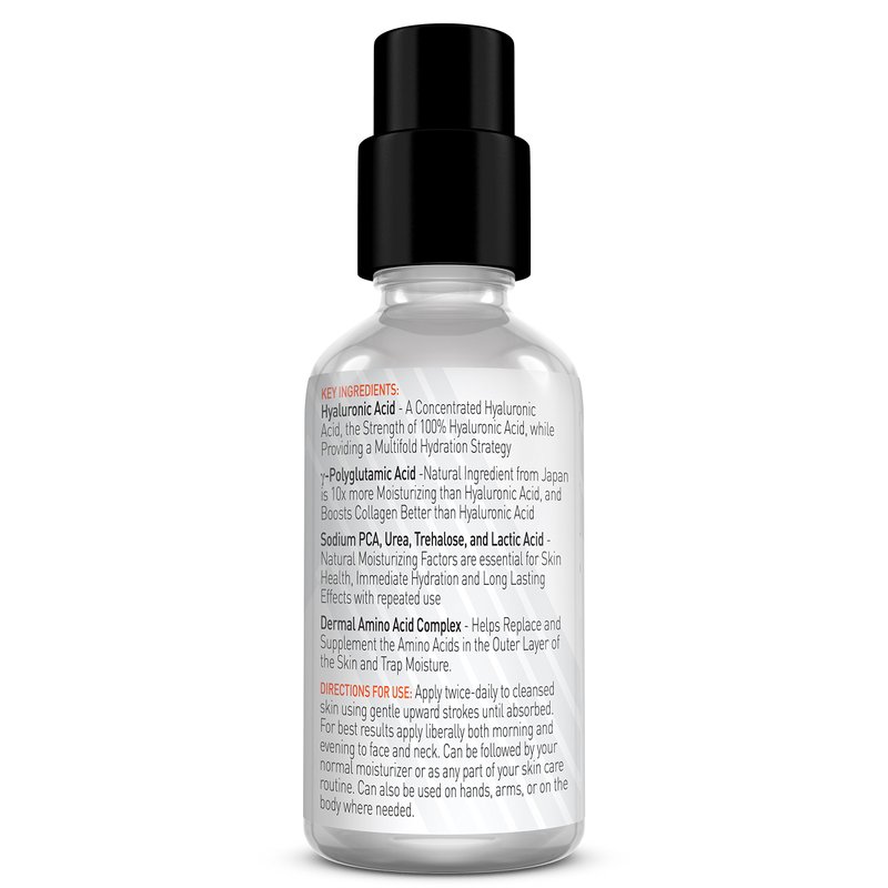 - A Concentrated Hyaluronic Acid Serum, with all the strength of a 100% Hyaluronic Acid Serum, Combined with Other Powerful Moisturizers to Provide a Supercharged Multifold Hydration Strategy