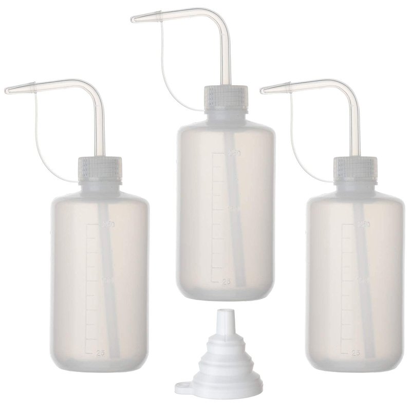 Hyber&Cara Safety Wash Bottle 3Pcs 250ml Plastic Squeeze Bottle with Cap for Lab Plant Watering Tattoo Wash Bottle with 1Pc Silicone Funnel
