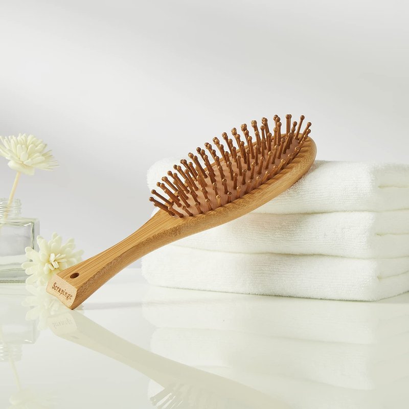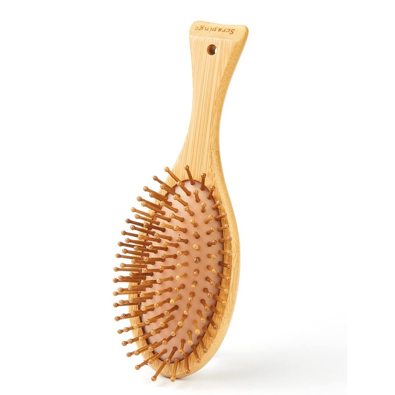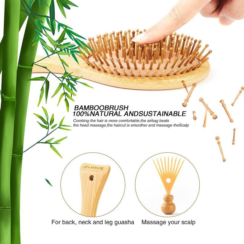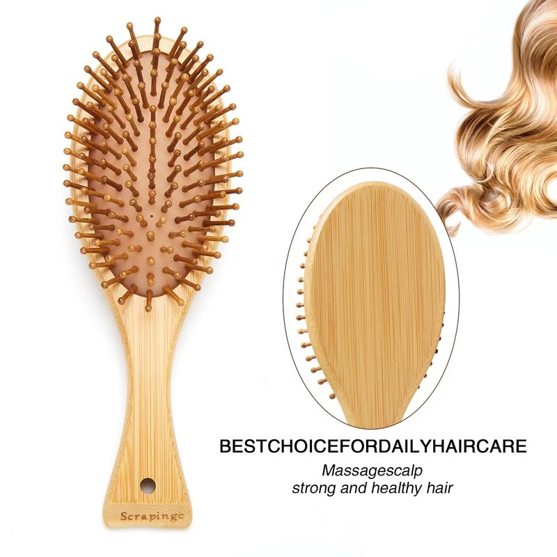 - 【Massage Scalp】The bamboo hairbrush has an ergonomic handle for easier use ,the tail used for massage or guasha . round-tipped bamboo needle design can Protect the scalp and hair. they will not cause pain or scratchin.ventilation hole on the air cushion of the hairbrush, which can releases air and reduce static electricity when you brush.