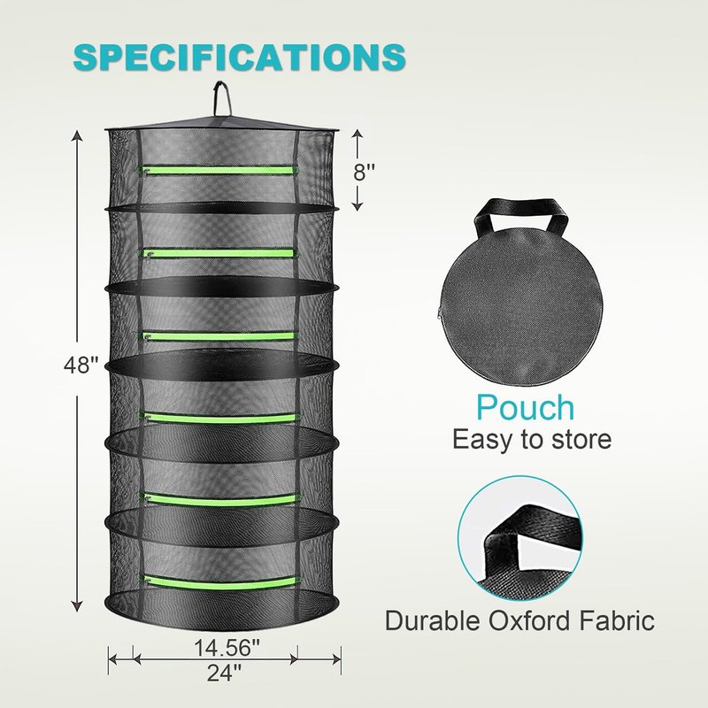 - ⭐【SPACE AND USAGE】Herb drying rack are available in 2, 4, 6 and 8 layers, with the 8 layer measuring 24 x 24 x 63 inches. The multi layer separated drying nets provide quick drying of herbs, plants, flowers, fish, nuts, etc. simultaneously.