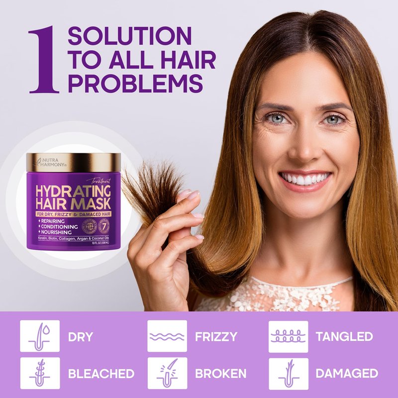 Discover Radiant Hair with NUTRAHARMONY’s Hydrating Hair Mask Treatment Transform your hair with our luxurious Hydrating Hair Mask Treatment, perfect for all hair types. In just 7 minutes, experience the power of ethical and sustainable hair care that delivers professional results. Key Features: Hydrating Hair Mask Treatment: Deeply nourishes and revitalizes hair. For All Hair Types: From curly to color-treated, our mask suits every strand. 7-Minute Action: Quick yet effective, for busy lifestyles. Ethical & Sustainable: Made with care for both your hair and the planet. Professional Hair Care: Experience salon-quality treatment at home. Collagen hair mask, collagen mask, conditioning hair mask, damaged hair treatment, deep collagen mask, deep conditioner, deep conditioner for curly hair, deep conditioner for dry damaged hair, deep conditioning hair mask, deep conditioning hair treatment, deep hair conditioner for dry damaged hair, dry hair treatment, extremely damaged hair treatment, frizzy hair products, hair care for women, hair care products, hair conditioner for damaged dry hair, hair deep conditioning treatment, hair keratin treatment, hair mask for color treated hair, hair mask for damaged hair, hair mask for dry damaged hair, hair mask for dry hair, hair mask for frizzy hair, hair moisturizer, hair moisturizer for dry hair, hair products for women, hair repair mask, hair repair treatment for damaged hair, hair treatment, hair treatment for dry damaged hair, haircare, hydrating hair mask, keratin, keratin hair mask, keratin hair treatment, keratin hair treatments, keratin treatment, moisturizing hair mask