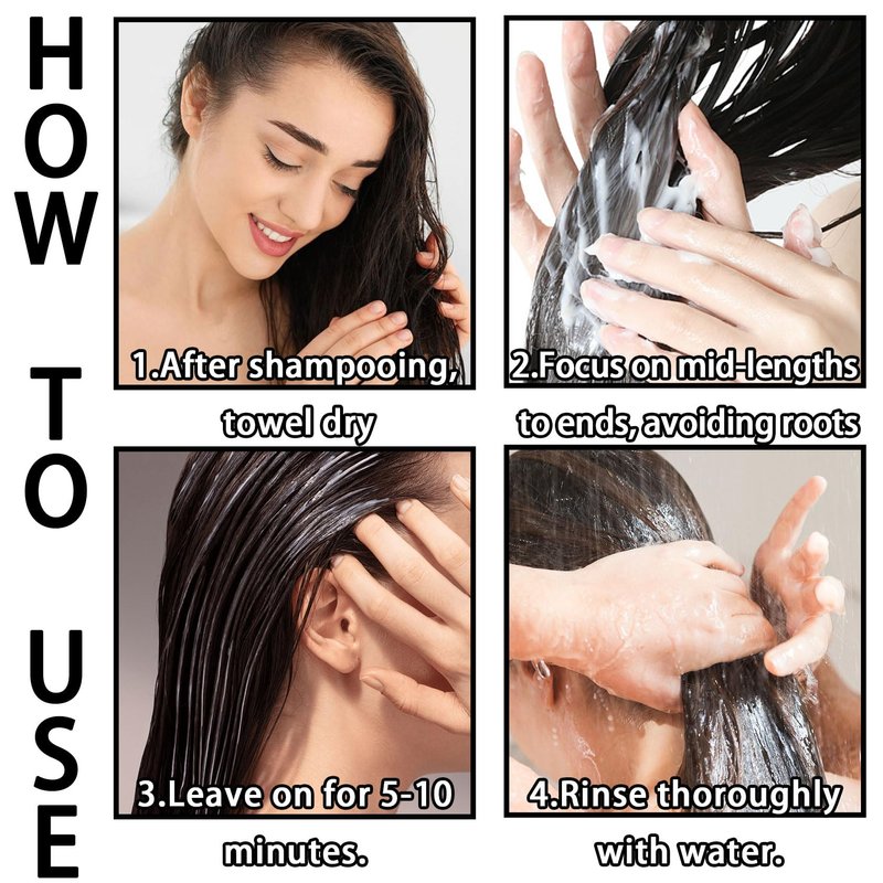 - 🛠【How to Use】Wash your hair and towel dry it, then take an appropriate amount of moisturising hair mask and apply it evenly to your hair, then gently massage your hair and leave it for a few moments before rinsing your hair clean.