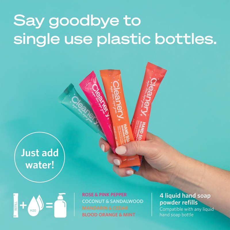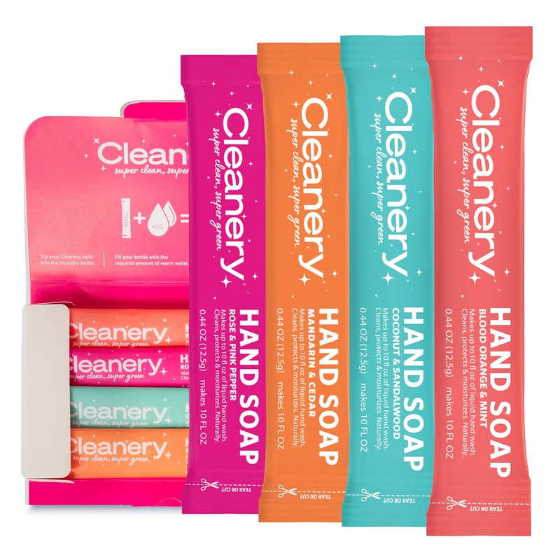 Hydrating Liquid Hand Soap Refill Powder Concentrate 4 Pack Moisturizing Hand Wash, No Harsh Chemicals, Cruelty Free, Eco-Friendly, Makes 10oz Each, 4 Scent Variety Pack