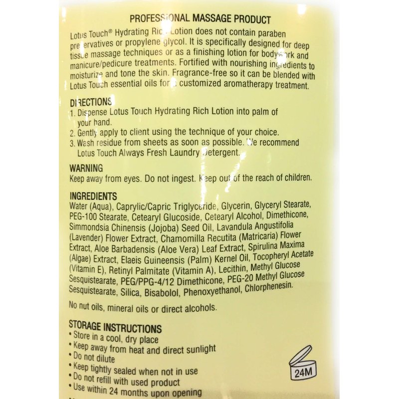 - LOTUS TOUCH HYDRATING RICH MASSAGE LOTION - 100% Pure Oils plus Herbal Extracts