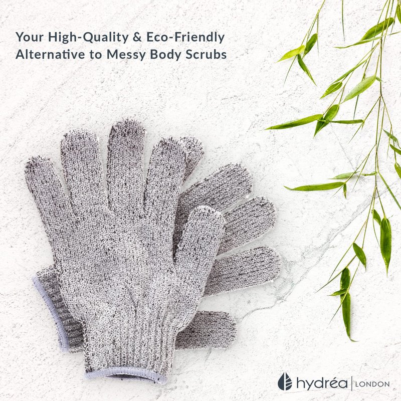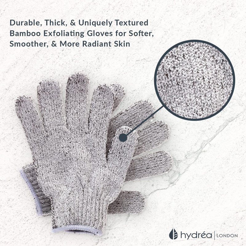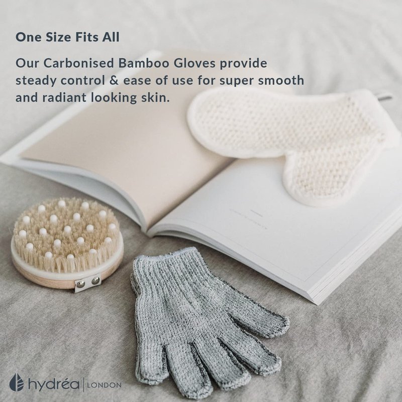 Hydrea London Exfoliating Gloves - Carbonised Bamboo Face Exfoliator & Body Scrubber for Men & Women - Deep-Cleansing & Smoothing Shower Mitt Exfoliant - Charcoal Facial Bath Scrub for Skincare