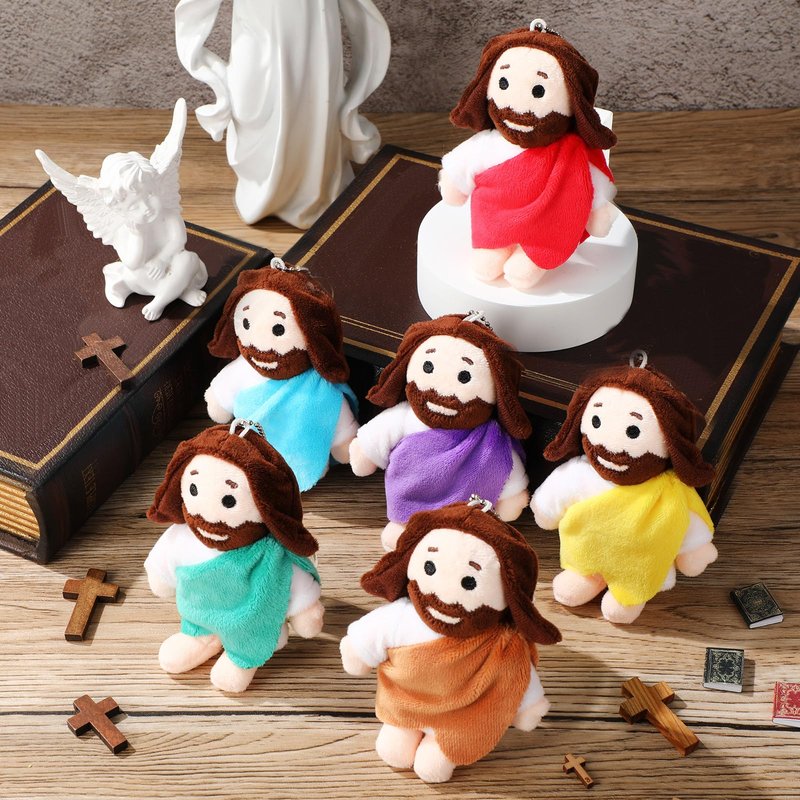 - Removable Chains for Versatility: each plush Jesus toy comes with a small, handy, and removable chain for easy attachment; This feature provides flexibility, allowing the toy to be hung on backpacks, applied as keychains, or even charmingly hung as a car's rearview mirror accessory