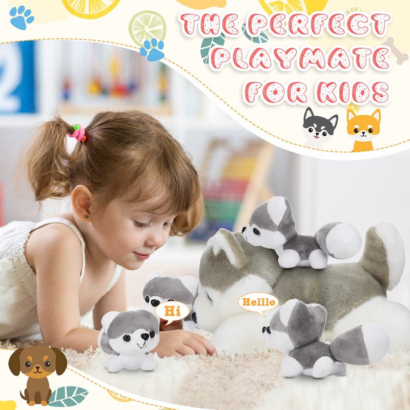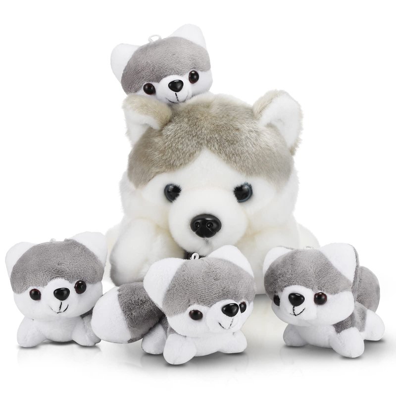 - 5 Pieces Husky Plush Set: you will get 5 Husky stuffed dogs, including a big Husky stuffed animal and 4 cute small Husky animal plush, nice combination meeting your decorative needs, the large Husky stuffed animal measures about 11 inches/ 28 cm high and the small Husky plush is 4 inches/ 10 cm high, with portable size, suitable to embrace in your arms