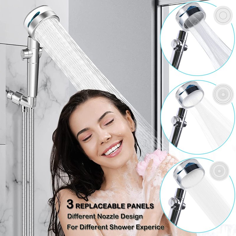 - 【3 REPLACEABLE PANELS FOR DIFFER SHOWER ENPERIENCE】- We provide 3 different stainless steel panels, water comes out and forms a pretty shape, so you can adjust your spray setting as per your need, each mode can bring you a fine dense, and gentle water that makes your body feel relaxed. All three modes are perfect for all ages, ideal for men, women, kids, and pets bathing, let your families enjoy the best shower experience in your bathroom