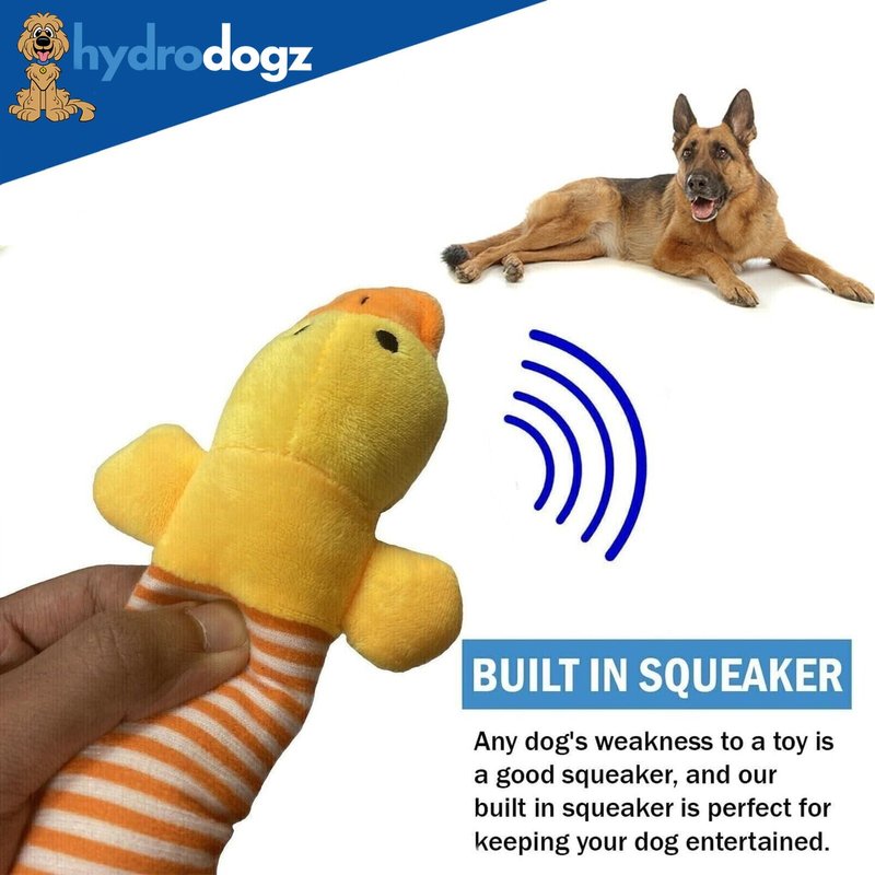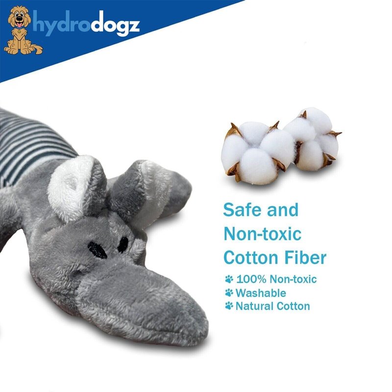 Hydrodogz 5 Pack Squeaky Plush Puppy Dog Chew Toy Assortment Animal Bundle Elephant, Pig, Duck, Cute Interactive Teething Toys for All Breeds and Sizes