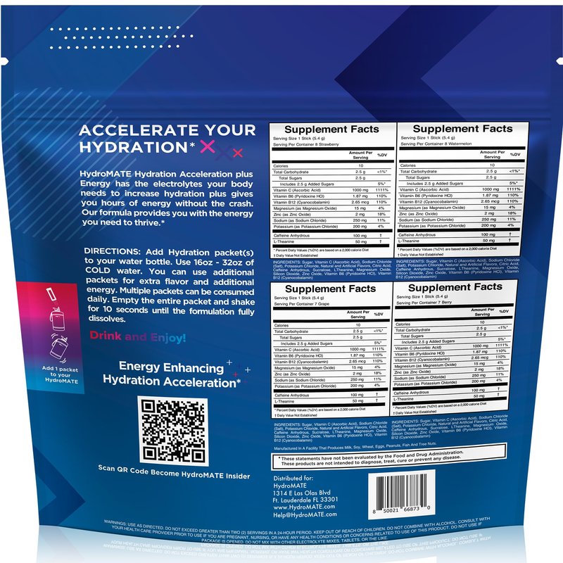 - Part Number: HydroMATE Energy Electrolytes Packets