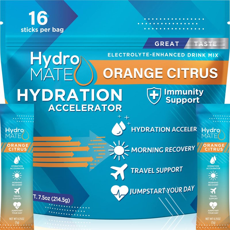 - HydroMate Orange Citrus Electrolytes Powder Packets Hydration Packs Individual Sticks