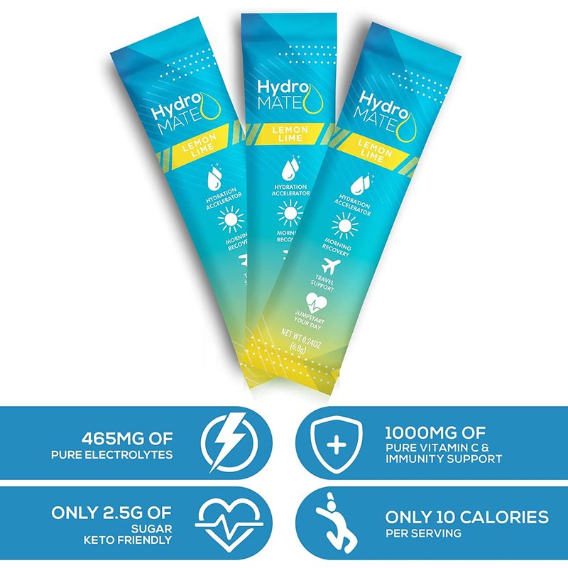 - HydroMate Lemon Lime Electrolytes Powder Packets Hydration Packs Individual Sticks