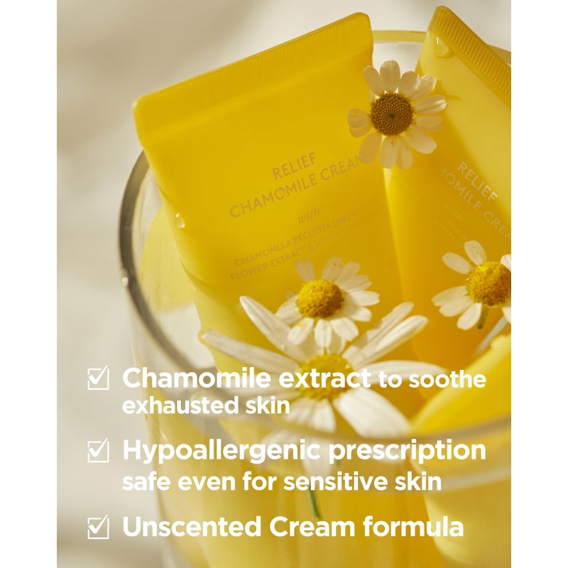 - SOOTHING SKIN RELIEF: Step into a world of total relief with our Relief Chamomile Cream. This gel-type soothing cream is packed full of moisture, providing comfort to skin damaged by harmful elements and constant mask-wearing. Uncover a new realm of skin rejuvenation where the essence of moist moisture leaves you with a fresh finish