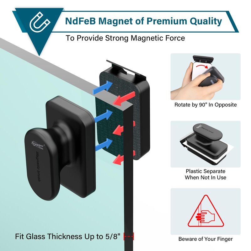 - 【Correctly Use】 The friendly handle easy to grip and won't slip in wet hands. You can smooth moved it up and down, also to go around corners to the other side. Please use plastic sheets or cardboard to separate two pieces magnet when not in use.