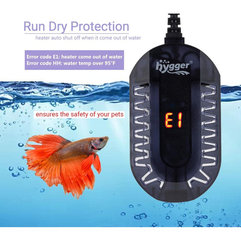 Hygger Mini Glass Aquarium Heater Adjustable LED Digital Temperature Display Small Tank Heater for Turtle Betta Fish Bowl with Protective Guard 50W