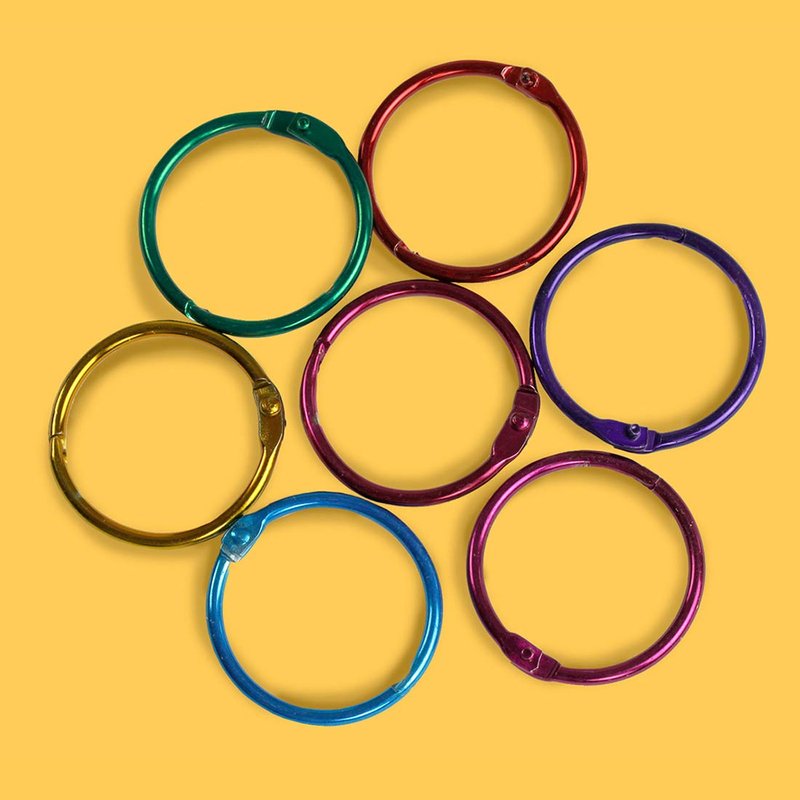 - COLORED BOOK RINGS – Each variety pack comes with 50 rings. They measure 1. 25 inches in diameter. You will receive some or all of the following metallic colors: red, gold, green, blue, purple or pink. The colors won't fade or rub off, like other rings commonly do!