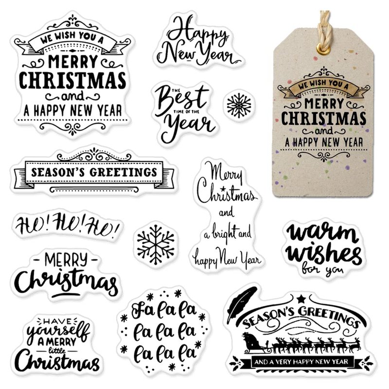 Hying Christmas Greeting Words Banner Clear Stamps for Card Making Scrapbooking Crafting DIY Decorations, Letter Transparent Silicone Stamps Seal for Embossing Album Crafts CS-WT-211104