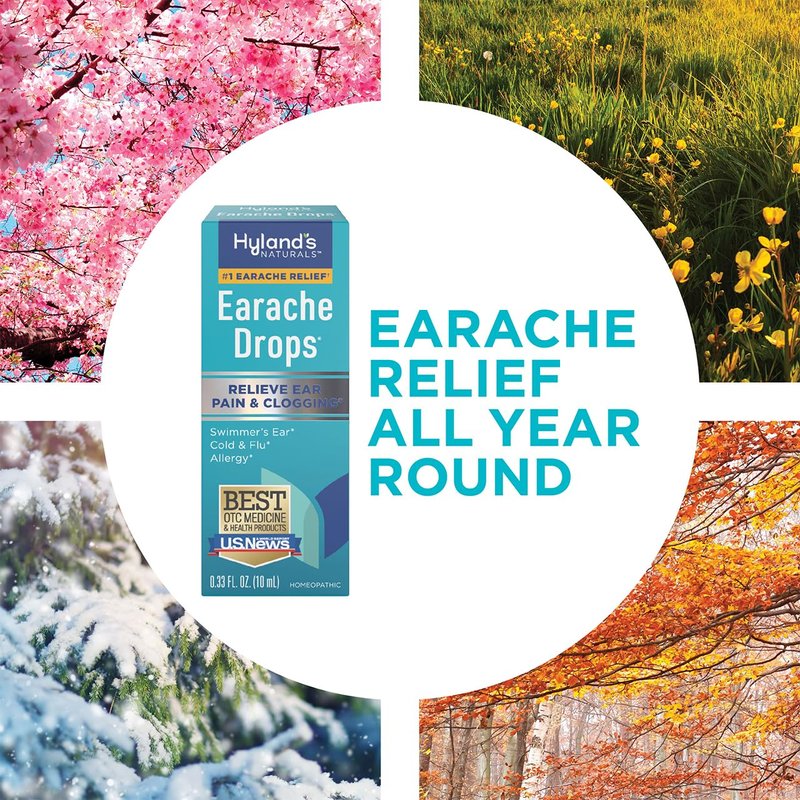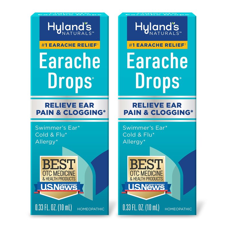 Hyland's Earache Drops, Natural Relief of Swimmer's Ear, Cold & Flu, Allergy Symptoms - Ages 4 & up: (2 Pack)