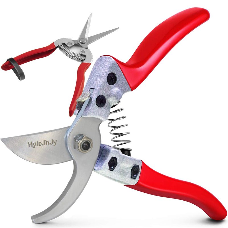 HyleJhJy Pruning Shears with Stainless SK5 Steel Blades+Straight Tip Gardening Shears Garden Shears Garden Clippers Florist Scissors Hand Pruners Garden Tools Gardening Tools Set,Red