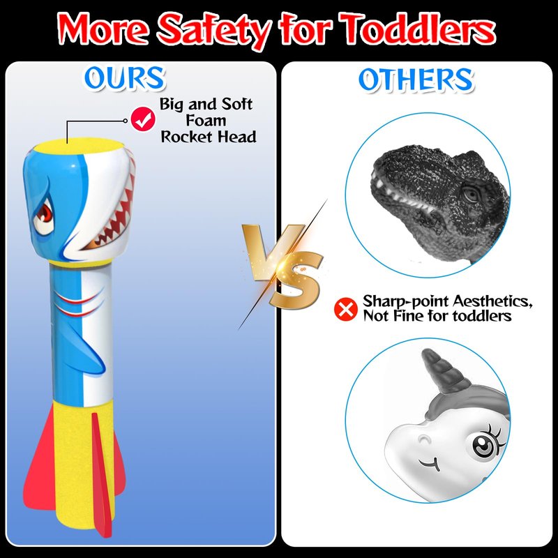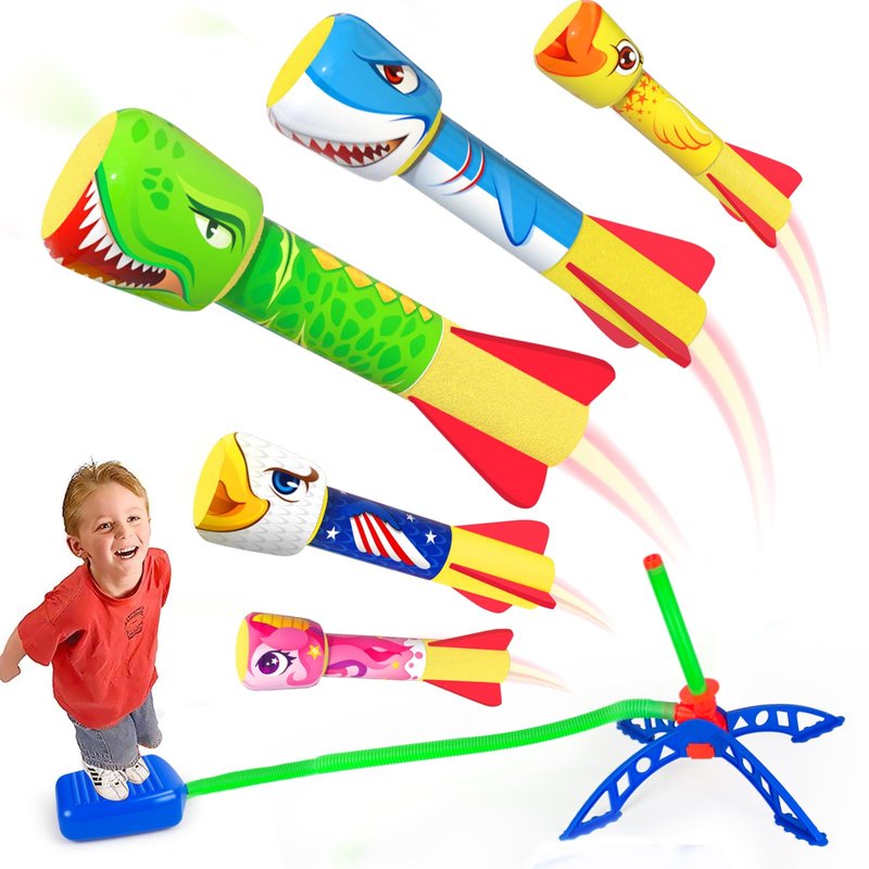 - šš¢šØš„š¦ š¢š š¢šØš§šš¢š¢š„ šš«ššš§šš šš”š§: The multi-animals rocket launcher can help kids develop their strength, coordination and balance. Fun and harmless outdoor play toys let kids release extra energy through hours of running and jumping! The yard toys kit includes five all-foam rockets, which come in three fun colors, and a storage stand