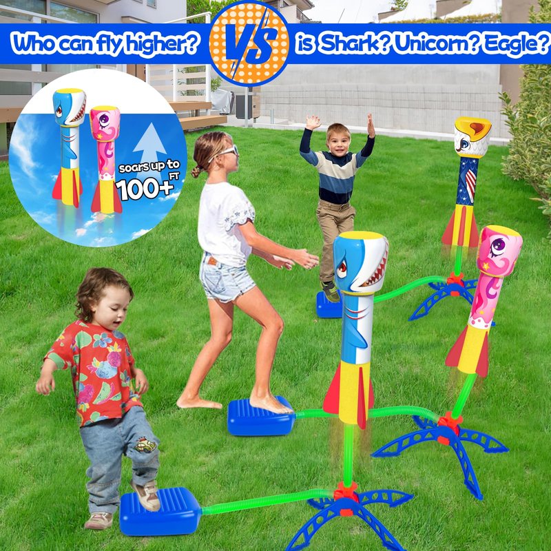 Hymaz Toys Rocket Launcher for Kids, Stomping Launch up 100 Ft, 5 Pack Foam Air Rockets with Sturdy Launcher Stand, Outdoor Yard Toy Birthday Gifts for Boys Girls Ages 3 4 5 6 7 8+ Years Old