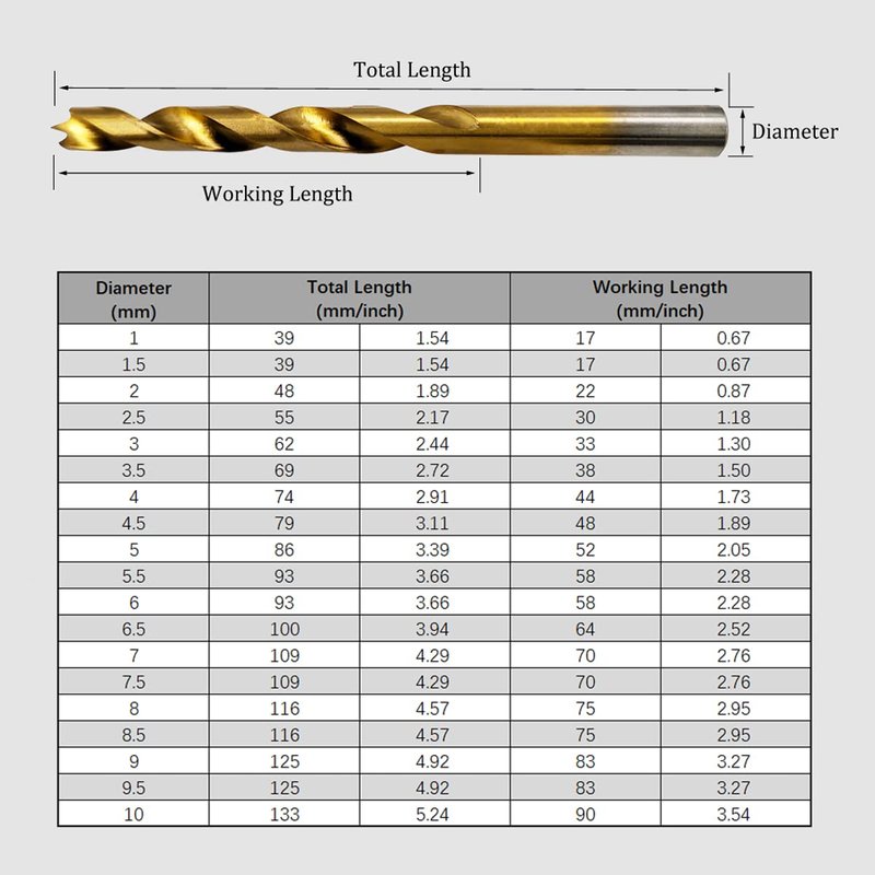 - SMOOTH SURFACE - Fully ground smooth drill bit body for less effort and higher accuracy. Titanium coating for higher wear resistance, ability to withstand higher temperatures, and increased durability
