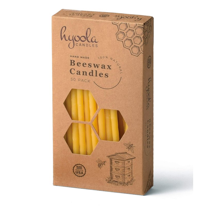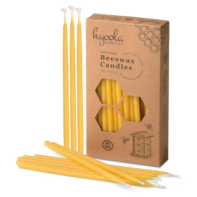 Hyoola Beeswax Birthday Candles – 50 Pack - Natural Dripless Decorative Candles with Long Lasting Burn – Elegant Taper Design, Soothing Scent – 6” Tall – Handmade in The USA