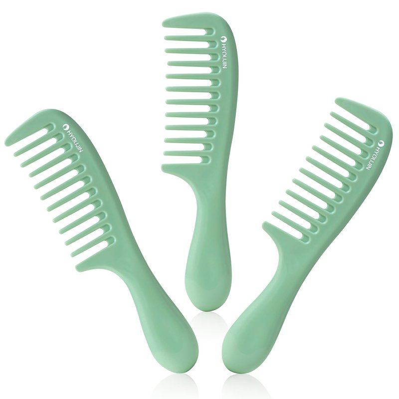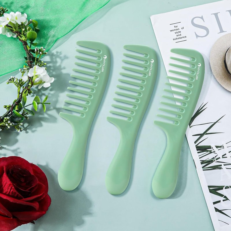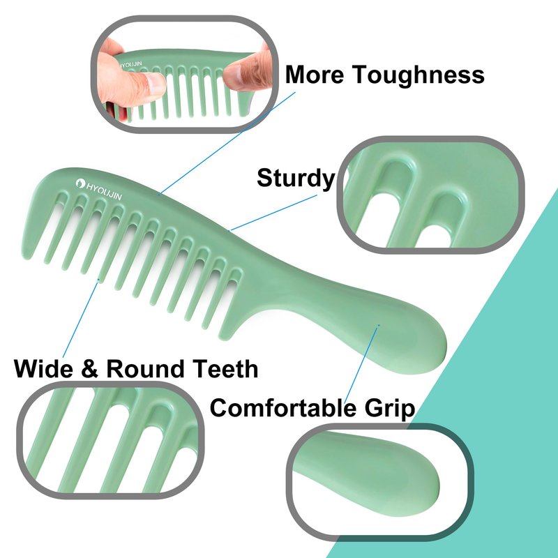 HYOUJIN 3 Pocket Wide Tooth Combs Plastic Detangling Shower Combs for Curly Hair, Wet Brush Detangle Comb for Women, Men, Green