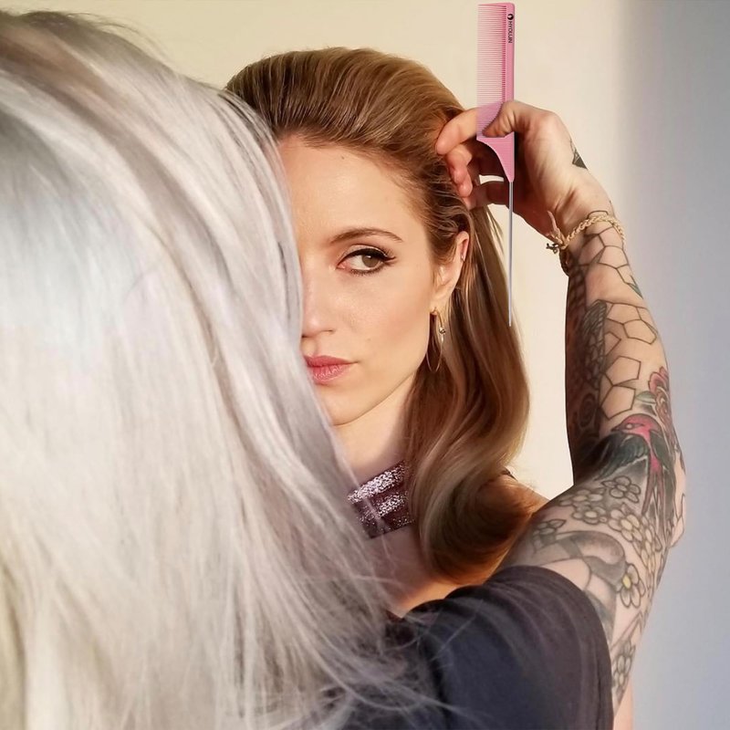 HYOUJIN Rattail Comb Pintail Comb Carbon Comb Wide Tooth Comb Teasing Comb Metal Parting Comb Perfect Lifting Lightweight For All Hairstyling Pink