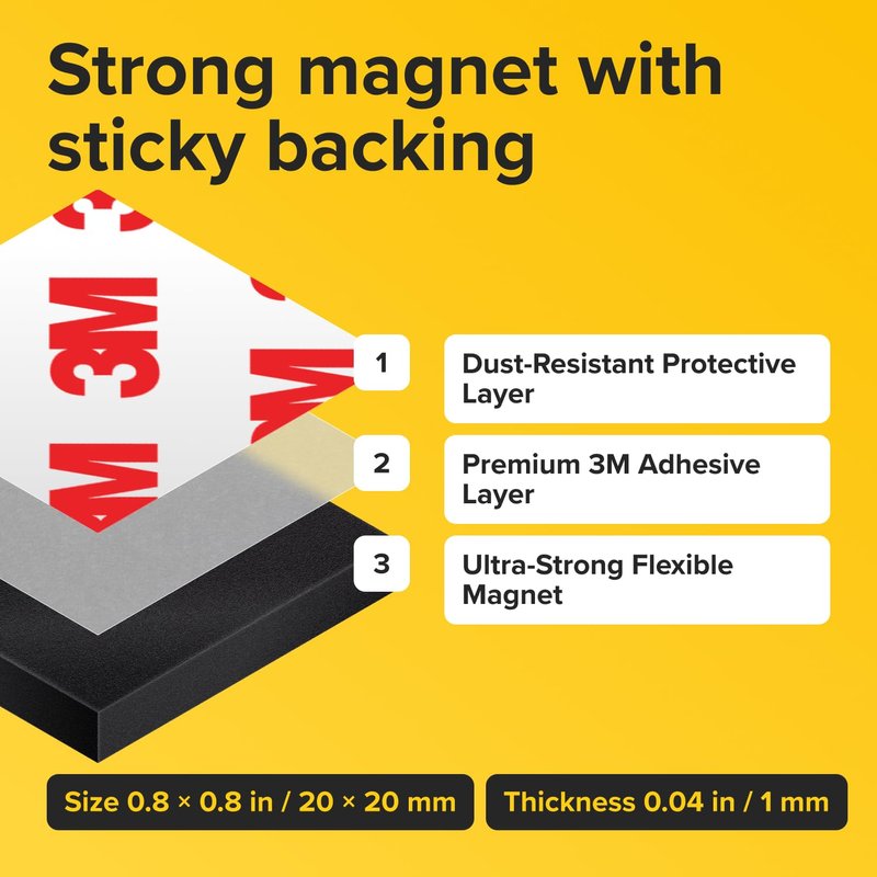 - 𝐃𝐔𝐑𝐀𝐁𝐋𝐄 𝟑𝐌 𝐀𝐃𝐇𝐄𝐒𝐈𝐕𝐄: These 3M magnets with adhesive backing feature a strong 3M adhesive backing that sticks firmly to smooth surfaces. For best results, press firmly and wait 24 hours before hanging items. The adhesive reaches 90% strength after 24 hours and full strength after 72 hours.