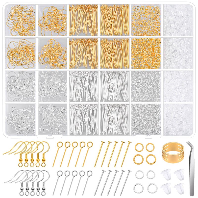 - 🔶【Earring Kit】modacraft earring making kit contains 200Pcs hypoallergenic earing hooks, 200Pcs eye pins, 200Pcs head pins, 300Pcs 4mm open jump ring, 300Pcs 6mm open jump ring, 800Pcs rubber earring backs,1 tweezers, 1 jump ring opener. Great for earring making and repair