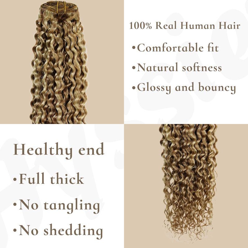 - 【Double Handmade Weft】Experience unparalleled comfort with our double handmade weft technology. Each curling clip is meticulously crafted from human hair, tightly stitched with two layers of soft, breathable weft. This innovative design not only enhances durability but also minimizes pressure and discomfort on the scalp, ensuring a seamless and comfortable wear.