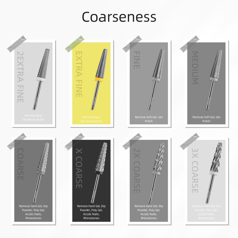 - Versatile Design: These drill bits are equipped with sharp cross-cut teeth that swiftly and effortlessly remove acrylic nails, hard nails, gel nails, thick nails, and nail residue. Whether you're a professional nail technician or doing your own nails at home, these bits cater to all your needs.