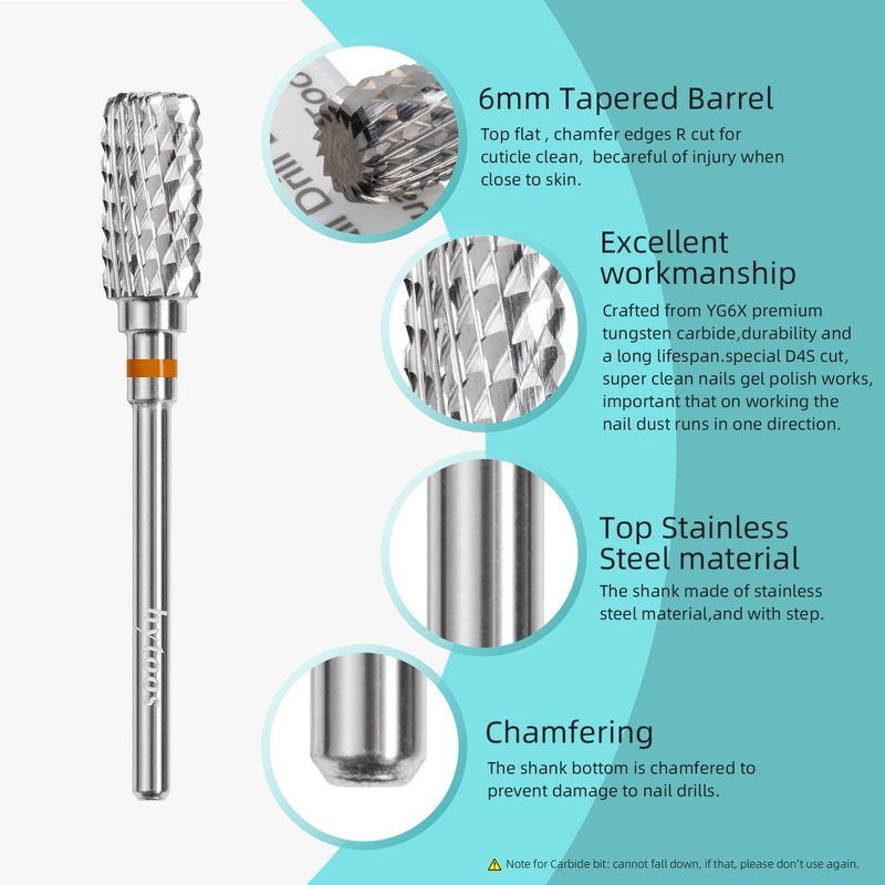 High-Quality Material[Low vibration, Lower heat, Durable, Remove fast]: Crafted from Y G6 premium tungsten carbide, hytoos nail drill bit ensure durability and a long lifespan and easy to clean. Whether you use them frequently or occasionally, these bits maintain their sharpness. Use regular barrel shape, pro manicurist or new poeple, very easy to use.