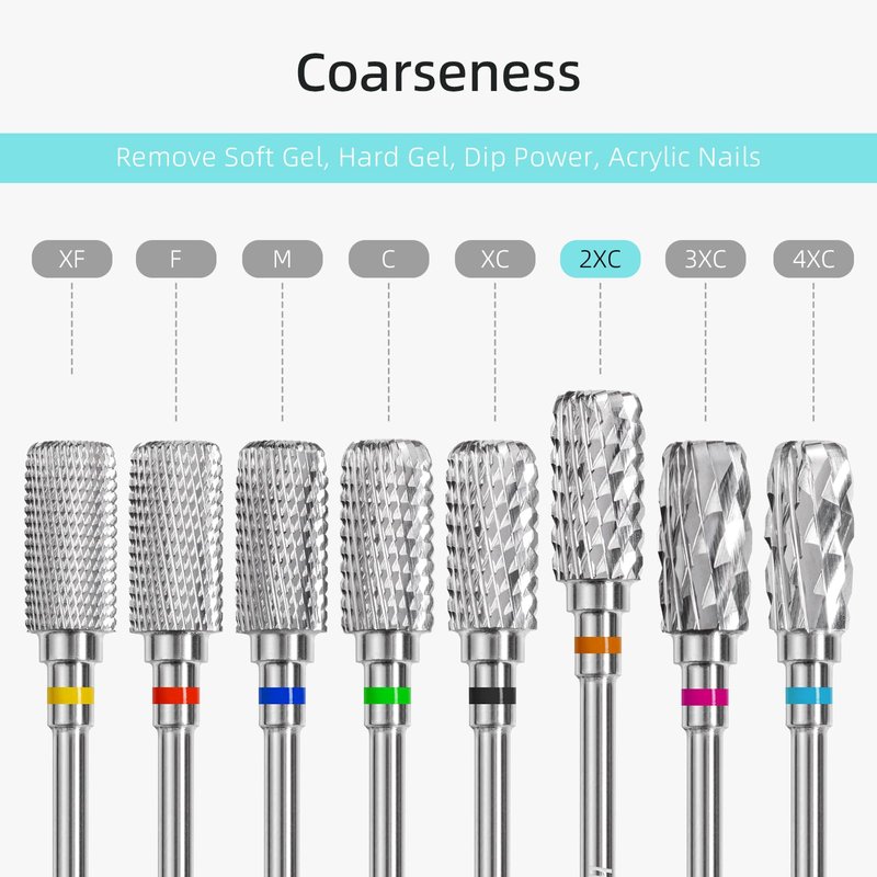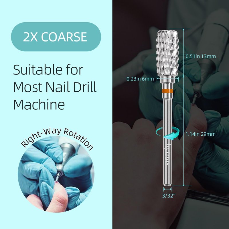 - High-Quality Material: Crafted from Y G6 premium tungsten carbide, hytoos nail drill bit ensure durability and a long lifespan and easy to clean. Whether you use them frequently or occasionally, these bits maintain their sharpness. Teeth Cut Grit from XF, F, M, C, XC, 2XC, 3XC, 4XC, choose correct teeth, Suitable for natural nails, artificial nails, acrylic nails, gel nails, nail extensions, polygel, cuticle removal, nail polishing, nail shaping, etc. meeting your different needs for nail art design.
