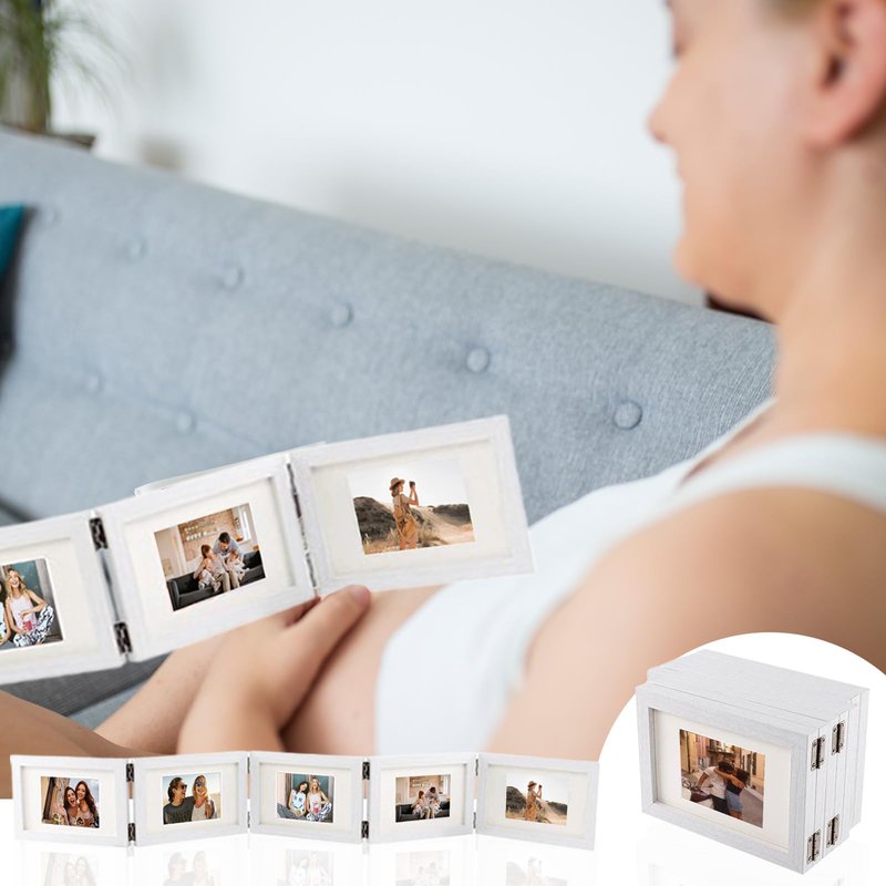 Hyuetrsa 5 Folding Ultrasound Picture Frame,6.8" x 4.7" Sonogram Picture Frame, Natural Wood Sonogram Keepsake Frame,Thoughtful and Memorable Gift for Expecting Parents,White