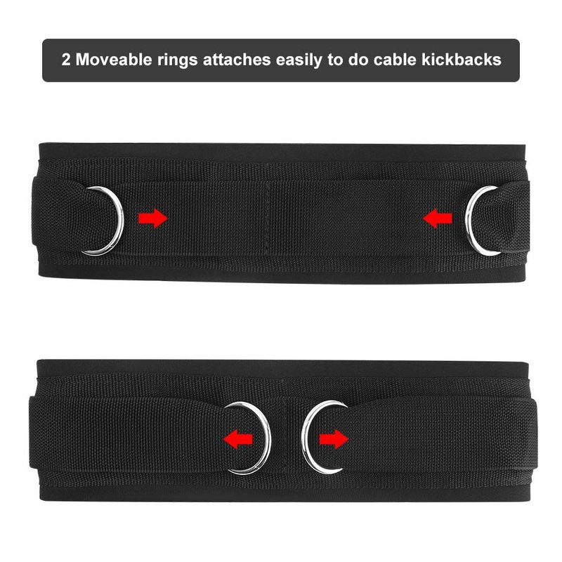 - 2 Moveable rings attaches easily to do cable kickbacks and resistance trainers.