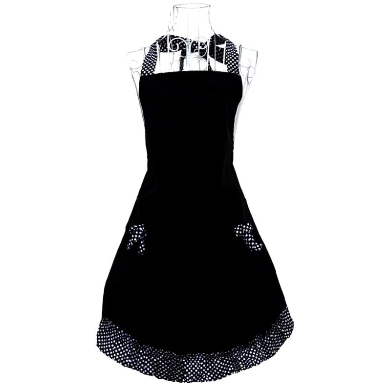 Hyzrz Cute retro Aprons with Pockets for Women Girls Vintage Kitchen Cooking Apron for Mother Gift (Black)
