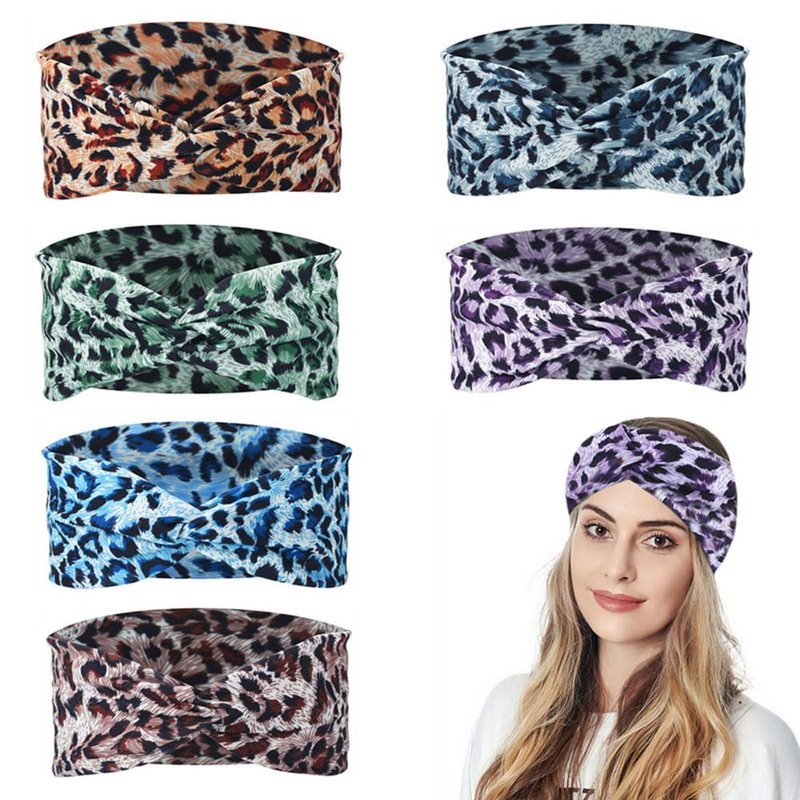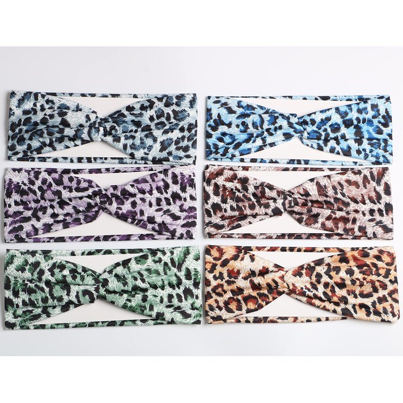 Hzaiwy 6PCS Women Leopard Boho Headbands,Boho Floal Style Criss Cross Head Wrap,Wide Top Knot Turban Hair Band (Leopard print)