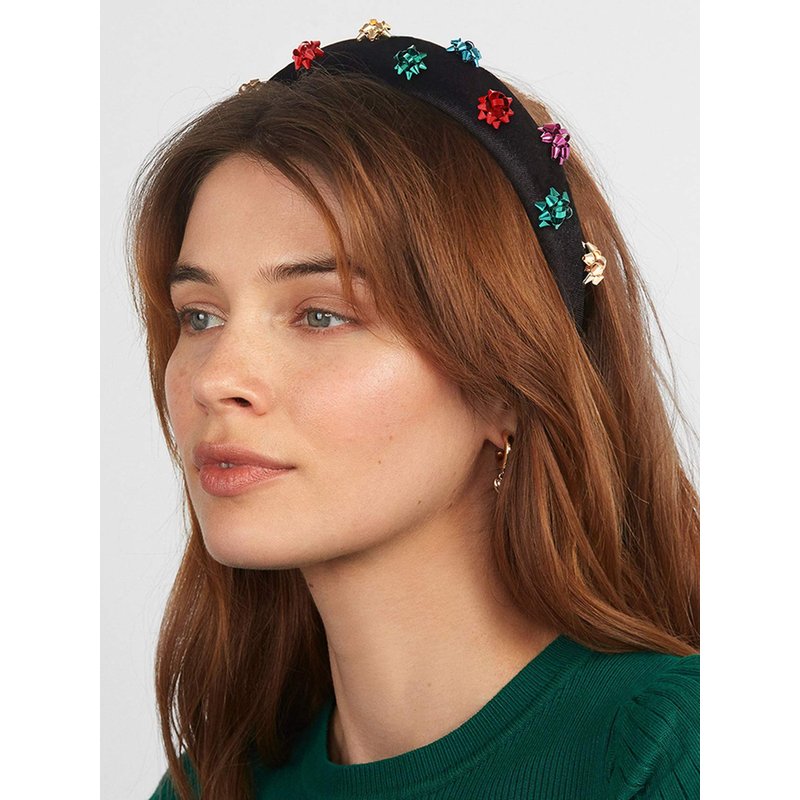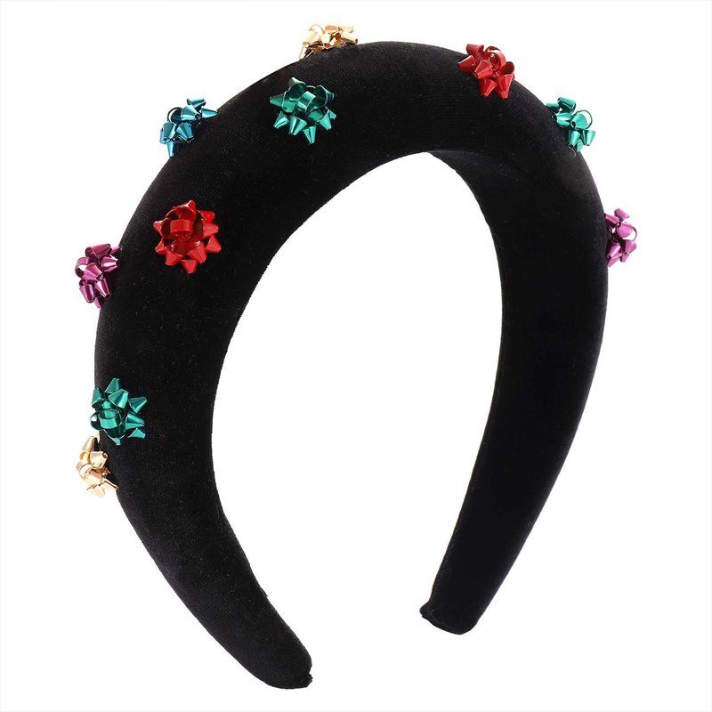 - Love the best trendy padded headband and the near holidays season? This one's for you. Our christmas giftwrap headband features a simple black style dotted with colorful metallic bow charms.